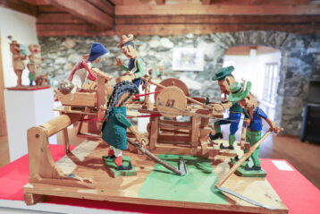Einblick in die Welt der Figurenspiele von Thomas de Martin Pinter, der als Knecht in seiner wenigen Freizeit mit einem Küchenmesser und einer kleinen Säge Figuren aus Holz schnitzte und diese mit Draht in Bewegung setzte. So entstand eine Figurenwelt, die von früherem Leben an den Höfen, über Handwerk, Brauchtum, Soziales und Sagen erzählt. Künstler Peter Fritzenwallner und das Künstlerpaar Katharina und Engelbert Zlöbl ließen sich von seinen Werken inspirieren und ergänzen die Schau mit zeitgenössischen Kunstwerken. Christine Schweinöster gestaltete dazu Schautafeln zu seinem Lebenslauf.