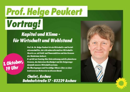 Bündnis 90/Die Grünen informieren und laden ein: Wir freuen uns, dass Professor Peukert zu uns ins Chiemgau kommt, um zum Thema “Kapital und Klimaschutz – für Wirtschaft und Wohlstand” zu referieren.