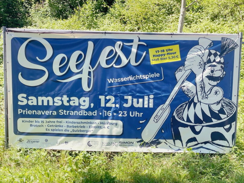 Zur Unterhaltung spielen die “Sulzberger Musikanten auf, für Kinder, denen u.a. eine Hüpfburg angeboten wird, ist der Eintritt frei – ansonsten beträgt er 4 Euro. Zu vorgerückter Stunde gibt es Wasserspiele. Und noch was: für die Happy-Hour zwischen 17 Uhr und 18 Uhr kostet diwae Maß Bier (oder Radler) nur 5,30 Euro.