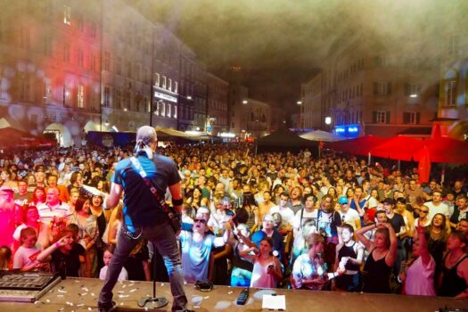 Auch am Samstag sorgen Mario Conti & Friends mit einem breitem musikalischen Repertoire für gute Stimmung. Gegen den Hunger zwischendurch können sich die Gäste des Salinplatz-Festes von den anliegenden Wirten verpflegen lassen.
