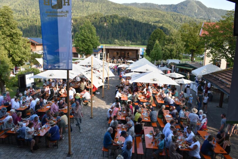 Ab 16 Uhr geht es los mit Kaffee und Kuchen, die Kleinen finden eine Spielstraße und Riesenhüpfburg vor, sowie ein umfangreiches Kinderprogramm mit einer Zaubershow um 18 Uhr. Es gibt auch was für Herz und die Ohren mit der Musikkapelle Schleching und den „5`e hamma“, sowie Trachtentänze und Schuhplattler auf der großen Tanzbühne, die Goaßlschnalzer und auch die Alphornbläser sind dabei.