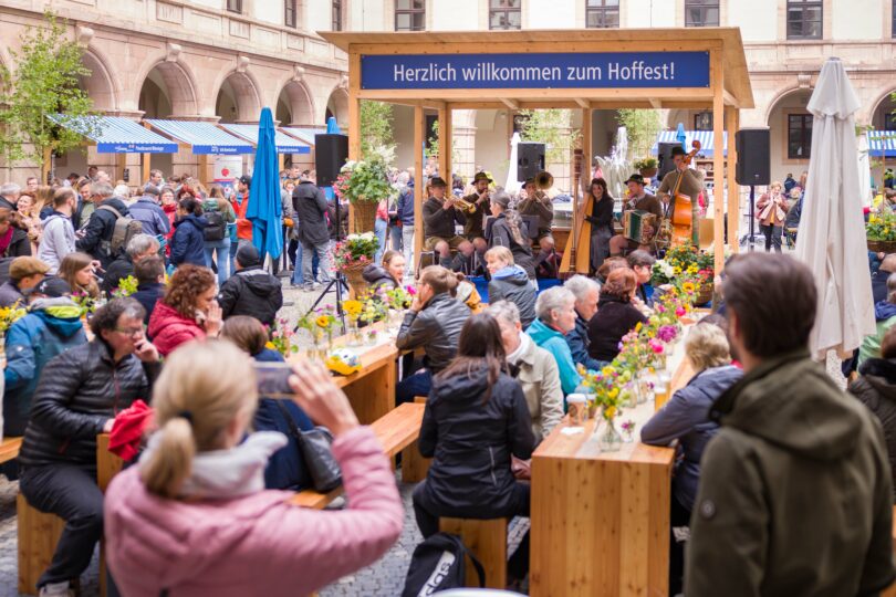 Bericht undFoto: Bayer. Landwirtschaftsministerium – Foto von Pia Regnet/StMELF zeigt das Sommer-Hoffest im Mai 2023 – Flyer von alp Bayern/StMELF honorarfrei verwendbar.