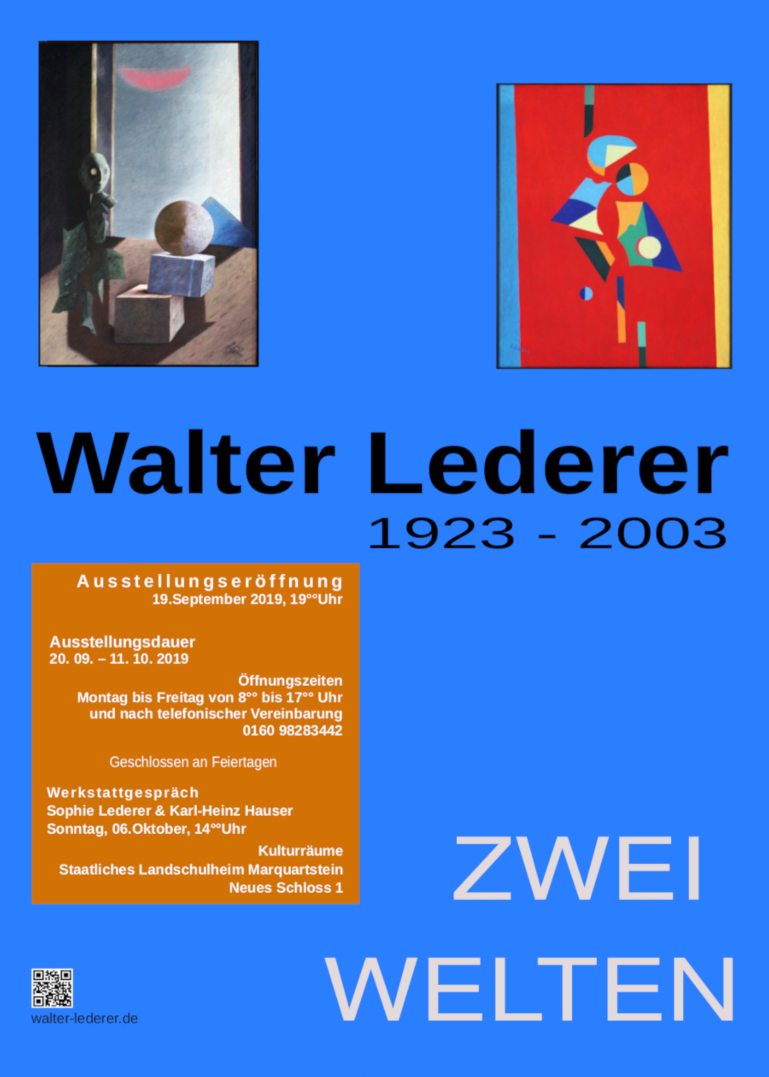 Eine Ausstellung über den 2003 verstorbenen Chiemgauer Maler Walter Lederer ist vom 20. September bis 11. Oktober 2019 in den Kulturäumen des Staatlichen Landschulheims Marquartstein zu sehen. Die Ausstellungseröffnung findet am Freitag, den 19. September, um 19 Uhr statt.