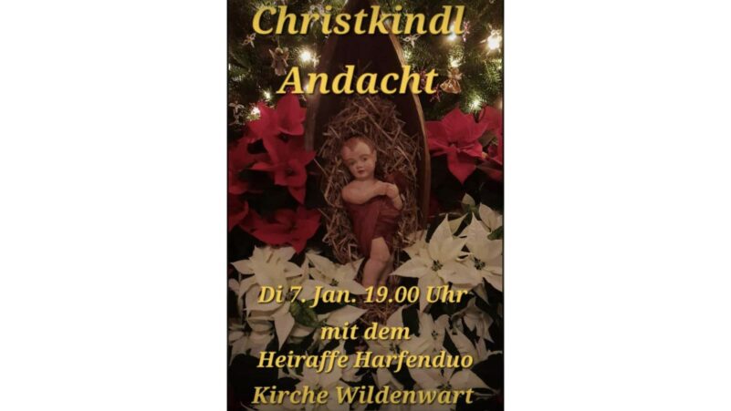 An diesem Dienstag, den 7. Januar, findet um 19:00 Uhr eine Christkindlandacht in der Kirche Wildenwart statt.
