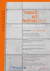 Mit Unterstützung der meine Volksbank Raiffeisenbank eG bringt die Städtische Galerie Rosenheim ab dem 7. Juli mit *transit art auch im Sommer 2023 pulsierende Street Art wieder nach Rosenheim.