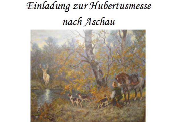 Die Jägervereinigung Rosenheim veranstaltet Ihre traditionelle Hubertusmesse am Sonntag, 2. November in Aschau i. Chiemgau um 19 Uhr in der Pfarrkirche Darstellung des Herrn.
