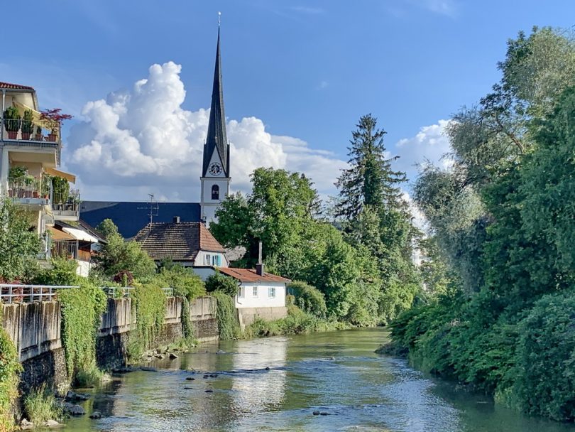 Foto: Hötzelsperger – Blick zur Pfarrkirche Mariäe HImmelfahrt in Prien a. Chiemsee
