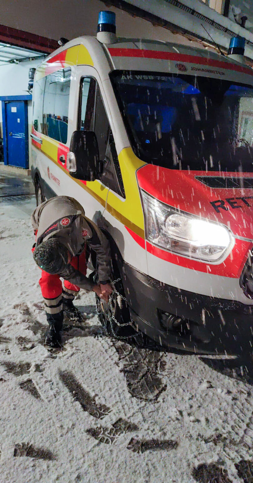 Damit trotz der enormen Schneemenge und der dadurch längeren Fahrzeiten Hilfe im Notfall möglichst schnell ankommt.