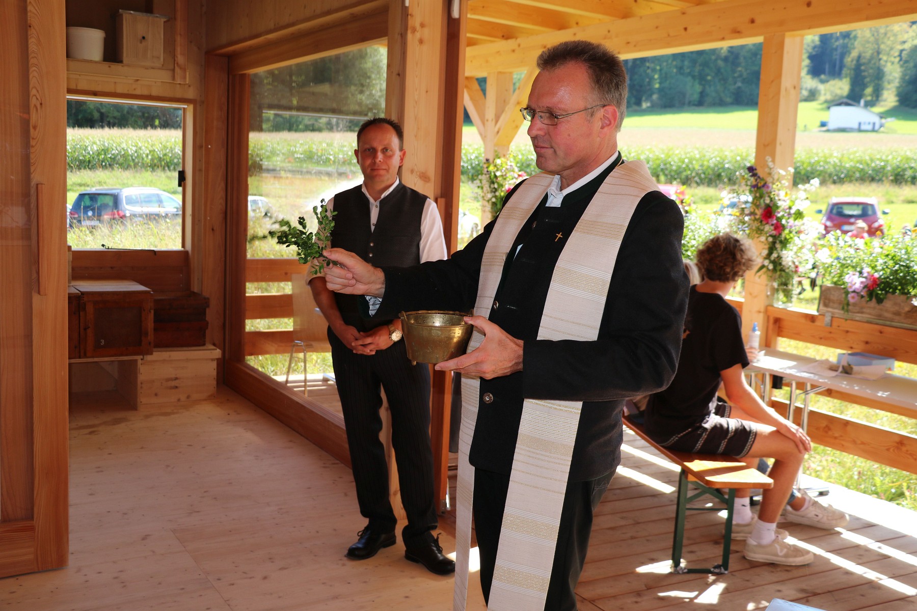 Pfarrer Paul Janßen gab dem neuen Lehrbienenstand und allen, die das Gebäude künftig nutzen werden, den Segen der Kirche.