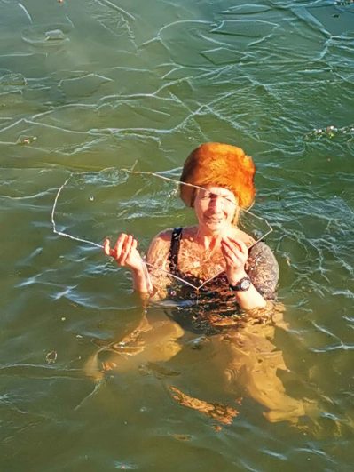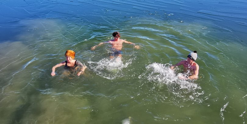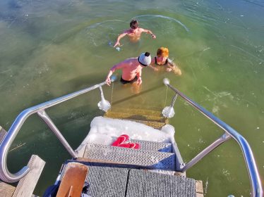 Für hartgesottene Naturleute ist das Eisschwimmen im Winter vorbehalten. Wie unsere aktuellen Aufnahmen vom Chiemsee zeigen, wagte sich dieses Trio ins kühle Nass nachdem sie eine Fläche von der dünnen Eisdecke freimachten. Alsdann ging es mit Badehose, Haube und Pelzmütze hinein und nach ein paar Runden ging es wieder zurück ans Priener Chiemsee-Ufer.