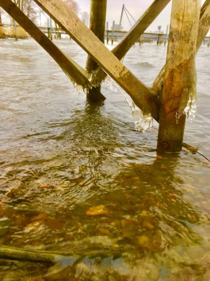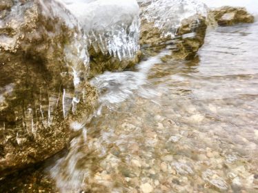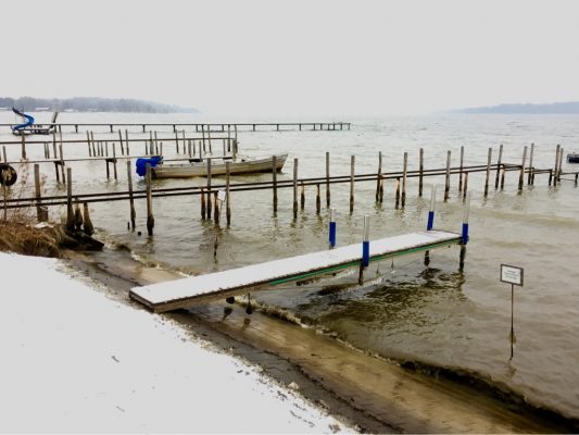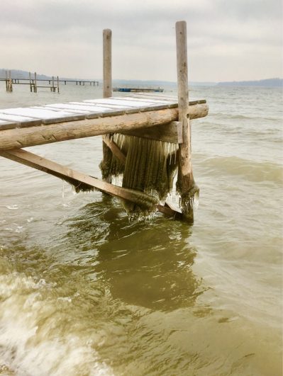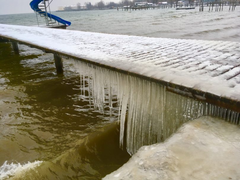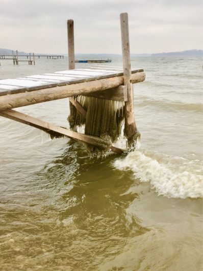 Einen richtigen Biss hat die Winterkälte an den Chiemgauer Gewässern bekommen – wie diese aktuellen Bilder vom Chiemsee-Strand in Bernau-Felden am Steg der Chiemsee-Schifffahrt zeigen.