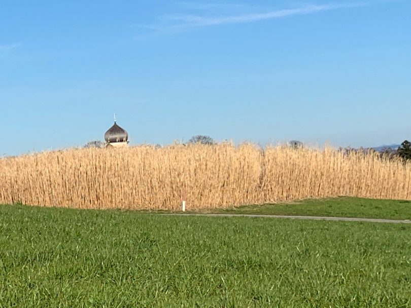 Zwischen den Ortschaften Röselsberg (Gemeinde Frasdorf) und Prutdorf (Gemeinde Prien) findet sich ein Feld mit Elefantengras. Das mehrjährige, besonders schnellwüchsige Energiegras zum Heizen eignet sich gerade in der malerischen Chiemgau-Gegend mit Pfarrkirche “Christkönig” von Wildenwart als ideales Foto-Motiv.