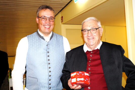 - Bild 2: AG ELF-Bezirksvorsitzender Michael Hamburger bedankt sich bei Josef Miller, Bayer. Staatsminister a.D.