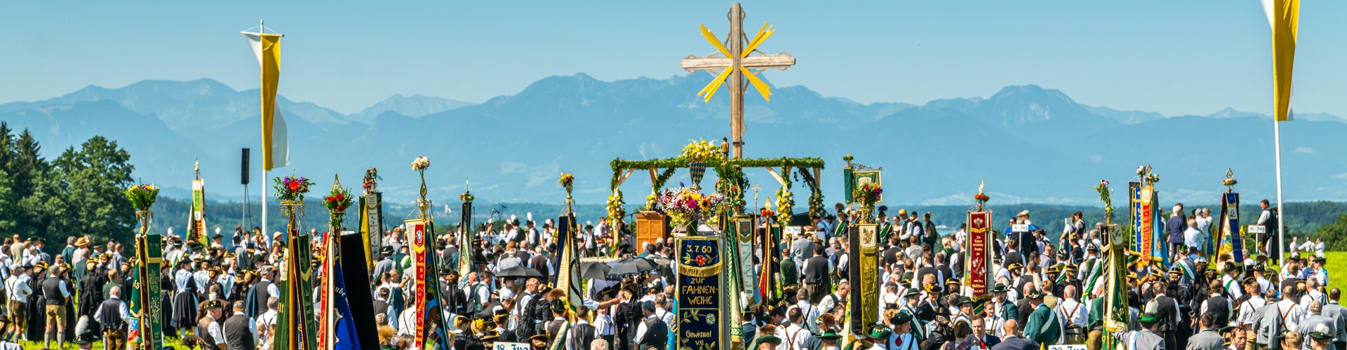 Als gestern das Gaufest des größten Trachtengauverbandes Bayerns in Bad Endorf stattfand, war dies einmal mehr der Höhepunkt des Jahres für die Trachtlerinnen und Trachtler aus den 117 Vereinen des Gauverbandes I. Dazu machten sich 8000 Trachtler und 43 Musikkapellen auf den Weg nach Bad Endorf. Somit waren mehr Trachtler und Musikanten in Bad Endorf als der Ort Einwohner hat. Damit setzten die Trachter ein eindrucksvolles Zeichen für Heimatverbundenheit und Brauchtum: Bewegender Festgottesdienst vor einer Traumkulisse, ein imposanter Festzug durch Bad Endorf und dann Feiern bei Tanz und Musik im riesigen Festzelt. Mitarbeiter Markus Färber vom Flötzinger sagte zum Festzelt: “Ich bin jetzt seit über 22 Jahren Garniturenfahrer beim Flötzinger und habe zum Bestücken eines Bierzeltes noch nie so lange gebraucht, wie für dieses. Eine gigantische Burg.” Im Grußwort dankte Rosenheims Landrat Otto Lederer den Endorfer Trachtlern für deren Mut, Fleiß und Geschick, zum G7-Gipfel zurückblickend sagte er noch: „Für die sieben Staatsoberhäupter und ihre Gäste waren 18.000 Sicherheitskräfte im Einsatz, heute bei 8.000 Trachtlern haben wir vielleicht acht Polizisten und die kümmern sich hauptsächlich um den Verkehr. Das ist nicht peinlich, sondern das macht uns stolz“.