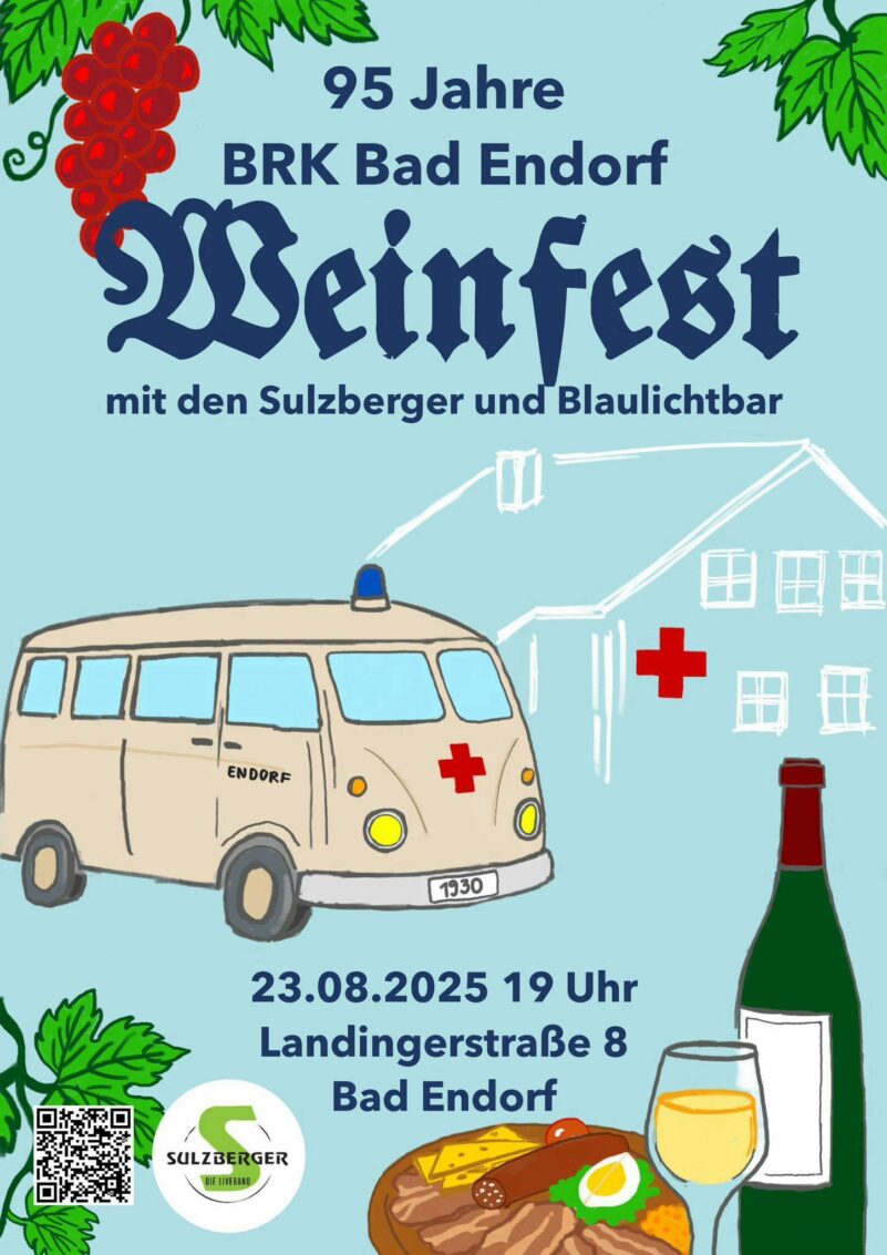 95 Jahre BRK Bad Endorf – das wird am heutigen Samstag, 23. August gefeiert. Hierzu wird zu einem Weinfest mit den Sulzberger-Musikanten und mit einer Blaulichtbar eingeladen.