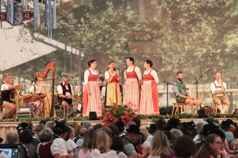 Text: Peter Helfmeyer – 1. Foto: Hötzelsperger – Traudi Siferlinger bei der Moderation des Festabends vom GTEV Bad Endorf anl. Gaufest 2022 mit den Geschwistern Stuhlmüller – Archiv-Foto: BR-Thomas Merk – Moderatorin Traudi Siferlinger