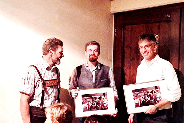 Ihren großen Erfolg feierten die Mitwirkenden mit einem gemeinsamen Pizzaessen vor dem Theaterhaus. Maximilian Krug, der den hungrigen Lehrbuben Girgl perfekt verkörperte und von Bürgermeister Alois Loferer sogar als “die Neuentdeckung des Jahres” bezeichnet wurde, bekam als Dank ein Fotoalbum, gefüllt mit Bildern von den Aufführungen, überreicht. Erster Vorstand Konrad Schlaipfer, der im Stück den Schneidermeister Gaißreiter spielte sowie Spielleiter Markus Krug erhielten als Geschenk ein gerahmtes Bild, auf dem alle Mitwirkenden zu sehen sind. Alle Beschenkten versprachen, diese Erinnerungsstücke in Ehren zu halten.