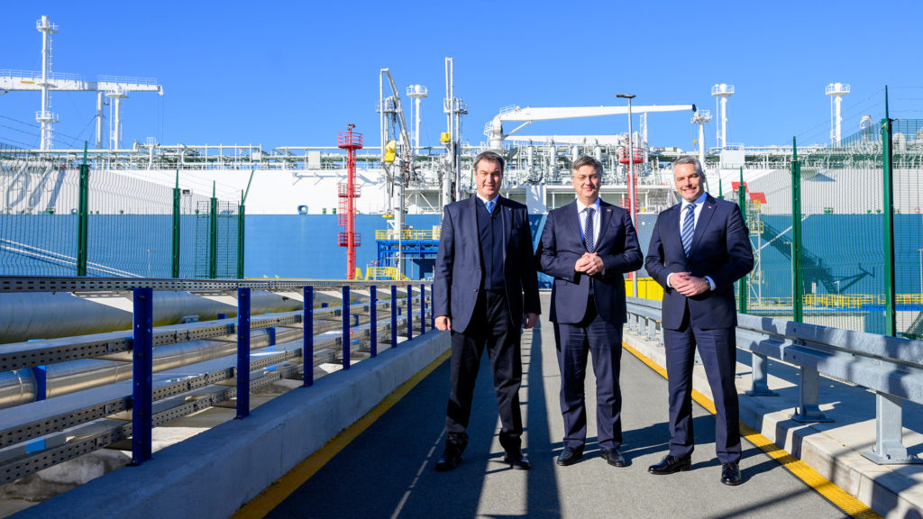 mit Kroatiens Premierminister Andrej Plenkovic und Oesterreichs Kanzler Karl Nehammer