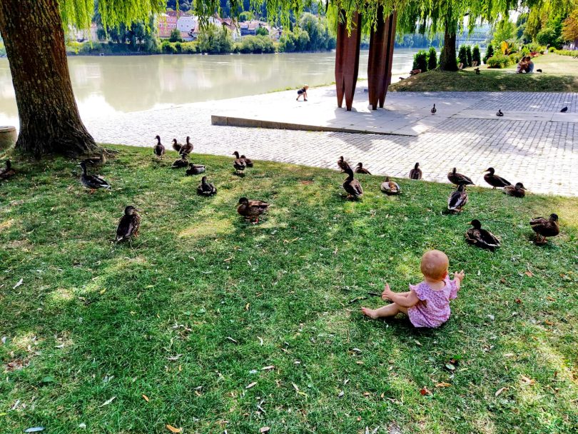 Froh und vertraut sind auf diesem Bild die kleine noch nicht ganz einjährige Eva und die Enten am Ufer der Donau in Passau vereint – in diesem Sinnen wünschen wir allen Leserinnen und Lesern der Samerberger Nachrichten einen friedlichen Spätsommer und eine weiterhin schöne bayerische Ferienzeit.