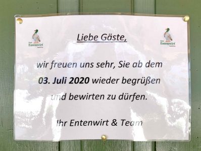 Seine heurigen Betriebsferien hat der Entenwirt vom Samerberg in Törwang im Monat Juni. Ab Mittwoch, 3. Juli fliegen die Enten wieder ein und das Entenwirt-Team ist wieder zu den gewöhnlichen Zeiten und mit seinen auch sommerlichen Enten-Gerichten wieder in Törwang für seine Gäste da. Nähere Informationen unter www.entenwirt.de, Telefon 08032-8815.