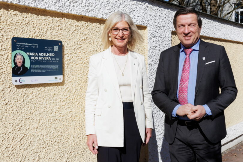 Die Stadt Erding ehrt Maria Adelheid Gräfin von Rivera mit einer besonderen Würdigung: Ein offizielles Signet am neu eingerichteten FrauenOrt weist ab sofort auf das außergewöhnliche Lebenswerk von Maria Adelheid Gräfin von Rivera hin. Damit wird ihr Wirken für die Öffentlichkeit sichtbar gemacht und in den Fokus der regionalen Erinnerungskultur gerückt.