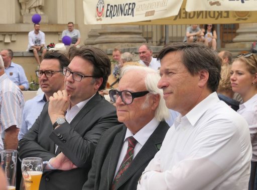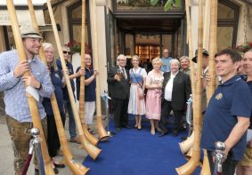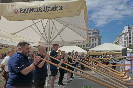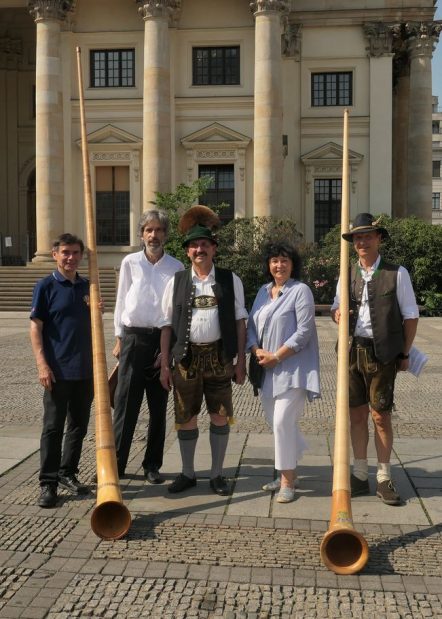 Zur Einleitung des offiziellen Teils formierten sich dann die Alphornbläserinnen und -Bläser auf dem Gendarmenmarkt zu einem Eröffnungskonzert. Der „Vorsitzende vom Verein der Bayern in Berlin“ hat hierzu alle verfügbaren Alphörner aus dem norddeutschen Raum zusammengetrommelt. Danach begrüßte der Marketing-Leiter von Erdinger-Weißbräu, Wolfgang Kuffner, die zahlreichen Ehrengäste. Der Erdinger-Chef, Diplom-Braumeister Werner Brombach, brachte in seiner Begrüßungsrede mit Freude zum Ausdruck, in Berlin einen Partner gefunden zu haben, der die bayerische Wirtshauskultur voll unterstützt. Es ist das kölsche Urgestein Jupp Miebach mit seiner Ehefrau Marlene. Mit im Boot, ihr langjähriger Geschäftspartner Giuliano Corolli, mit dem sie schon seit nahezu 50 Jahren ein erfolgreiches Team bilden. „Es liegt uns sehr am Herzen, mit „Erdinger am Gendarmenmarkt“ die bayerische Gastlichkeit und Gemütlichkeit in Berlin zu pflegen, und das neben den geschmackvollen Bieren der Brauerei auch mit authentischer bayerischer Küche, so Jupp Miebach.