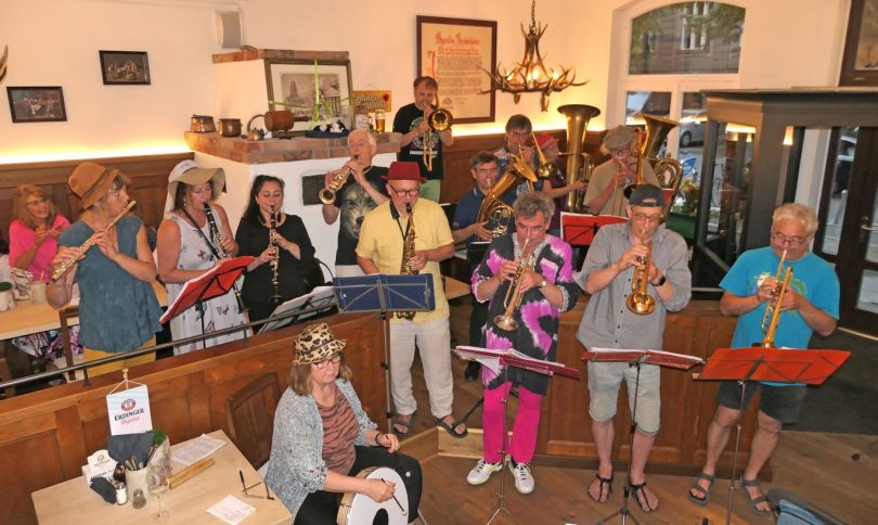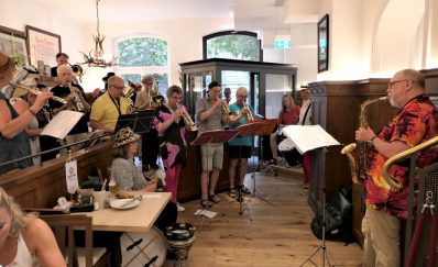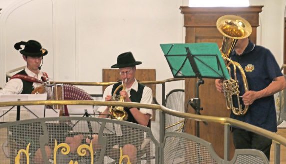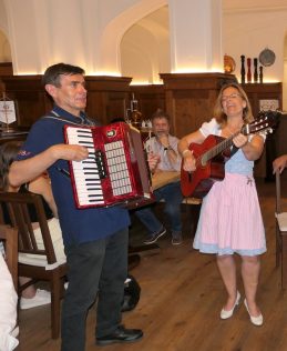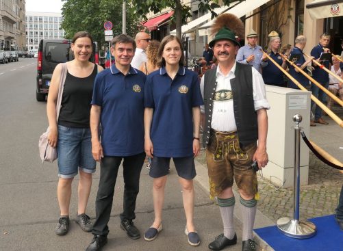 Bereits am frühen Morgen des ersten Tages haben sich die Trachtlerinnen und Trachtler vom Trachtenverein „Almenrausch“ aus Rossholzen/Samerberg nach Berlin auf den Weg gemacht, um die Feier bayerisch-traditionell zu umrahmen. Mit dabei, Toni Hötzelsperger, der Top-Journalist für bayerisches Brauchtum, in und außerhalb Bayerns. Der Toni berichtete unmittelbar vor Ort in seinen „Samerberger Nachrichten“ über die feierliche Eröffnung. Zum Auftakt am ersten Tag spielte die bayerische Band „Gaudi Harmonie“ aus dem Chiemgau. Mit fetzig bayerischer bis hin zu poppig moderner Unterhaltungsmusik sorgten sie für Hochstimmung von Anfang an. Dazwischen Trachtentanz, Schuhplattler, Goaßlschnalzer und Ziach-Musi von den Trachtlerinnen und Trachtler aus Rossholzen.