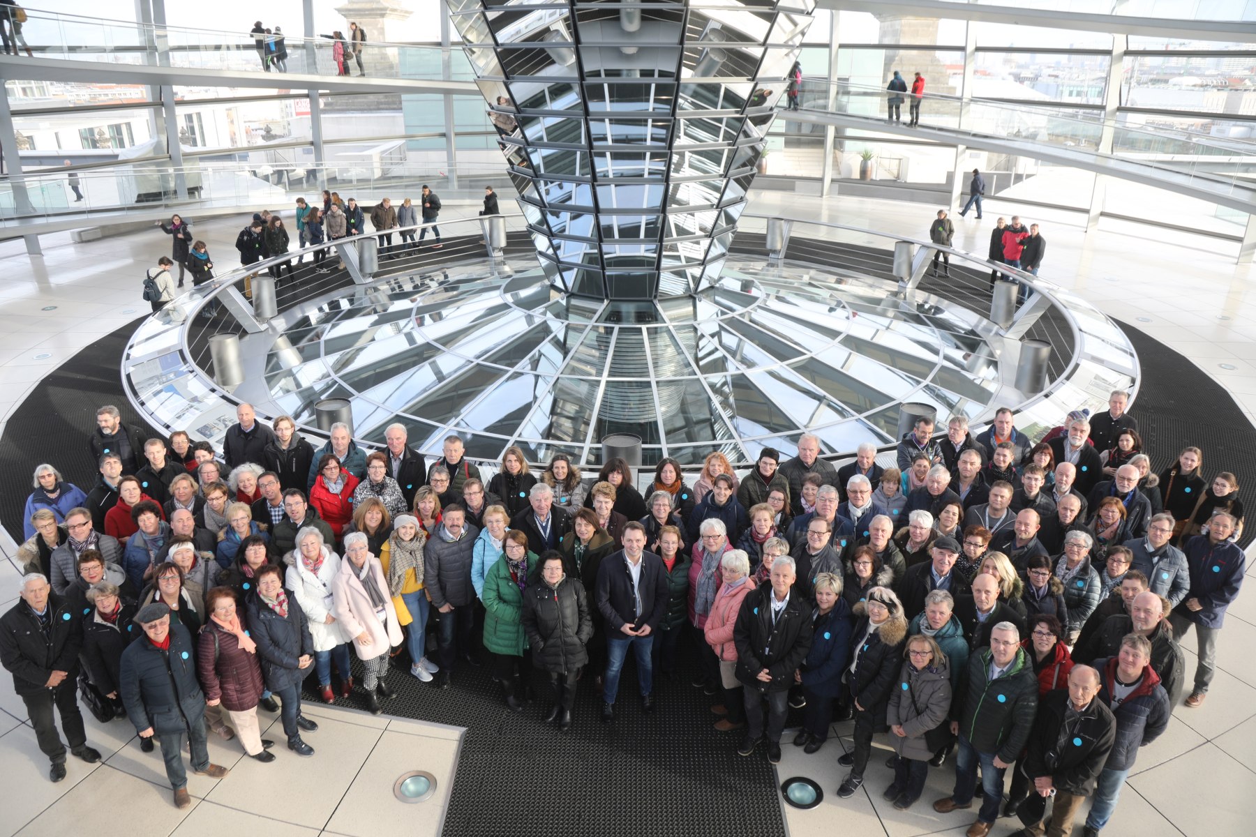 Die Erdinger Besucherdelegation zusammen mit dem Bundestagsabgeordneten Andreas Lenz (Bildmitte) im Berliner Reichstagsgebäude