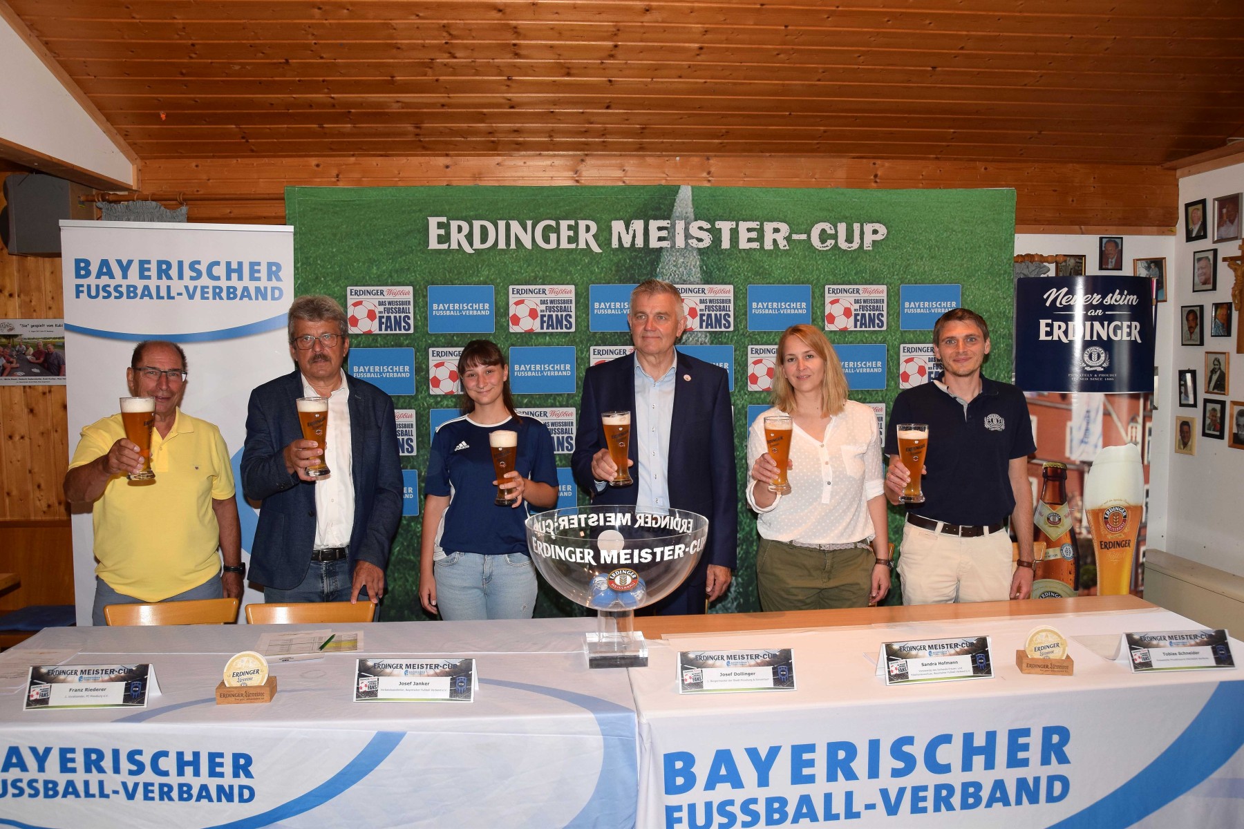 (v.l.n.r.): Franz Riederer (1. Vorsitzender FC Moosburg), Josef Janker (Verbandsspielleiter Bayerischer Fußball-Verband), Verena Riederer (FC Moosburg), Josef Dollinger (1. Bürgermeister Moosburg an der Isar & Schirmherr), Sandra Hofmann (Vorsitzende des Verbands-Frauen- und Mädchenausschuss Bayerischer Fußball-Verband) und Tobias Schneider (Pressestelle ERDINGER Weißbräu)