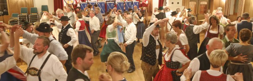 Schnell füllte sich am Freitagabend, 25. Oktober der Ramplwirtssaal mit Gästen jung und alt aus nah und fern, die adrett gekleidet in frescher Lederhosentracht und bezauberten Dirndln einen gepflegten Volkstanzabend verbrachten. Mittlerweile 48 Jahren stellt der Volkstanz in Hinterskirchen der Landshuter Volksmusikverein nicht nur eine feste Größe im kulturellen Veranstaltungskalender dar, sondern gilt darüber hinaus als wahres Schmankerl für Volkstanzbegeisterte. Der Volkstanzabend wird einmal jährlich organisiert. Trotz gleichartiger Veranstaltungen im Umkreis erlebt der Volkstanz nach wie vor einen immensen Zuspruch. Die überaus große Beliebtheit dieser Tanzveranstaltung stellt damit ein regelrechter Höhepunkt für Freunde der Volksmusik und vor allem des bayerisch-traditionellen Volkstanzes dar. Der hervorragende Anklang liegt dabei sicherlich in der stets vorherrschenden angenehm geselligen Stimmung mit viel traditionellen und flotten Volkstanzrunden zu besten bayerischen Klängen begründet. Ein kurzweiliger Volkstanzabend also, auf den sich die Gäste schon lange im Vorfeld freuten und der auch schon lange im Gedächtnis bleiben wird. Neben der Pflege der Förderung und dem Erhalt des Brauchtums “Volkstanz” steht bei dieser Veranstaltung auch ganz klar das zünftige und gesellige Beisammensein bei Tanz und bayerischer Musik im Vordergrund. Polkas, Zwiefache bis hin zum niederboarischen Landler wurde getanzt, wie der Lump am stecken. Nachdem die ersten Musikstücke durch die Höhenkirchener Blaskapelle Lust auf’s Tanzen machten, ging es auch schon tänzerisch und musikalisch so richtig mit dem Auftanz zur Sache. Alte wie auch moderne Volkstänze über einfache Rundtänzen bis hin zu anspruchsvollen Figuren- und Wechseltänzen aber auch ausgiebig Boarische, Landler, Walzer, Polka, Dreher und Zwiefache bot dieser Volkstanzabend. Die Tanzfläche war von Anfang an bis weit nach Mitternacht stehts gut gefüllt. Es war somit ein Tanzabend ganz im Zeichen der Besucher, deren Volkstanzherz dabei auch sicherlich höher schlug. Die Freude beim Auseinander und Zueinander, Linksherum und Rechtsherum, Drehen und Stampfen ließ an der Lebendigkeit der Tänzer keinen Zweifel. Einen wesentlichen Beitrag hatte auch die Tanzlmusi auf das Gelingen dieser Tanzveranstaltung. Im Vordergrund des Volkstanzabends stand somit natürlich das Tanzen, aber auch das Zuhören war ein wahres Genuss. Als Zugabe wurde nach jedem Tanzblock ein Zwiefacher aufgespielt. Mit einer Portion gutem Musikgehör ausgestattet folgten die Paare den Tanzschritten Drehen und Abdrehen im Wechsel der Melodie.