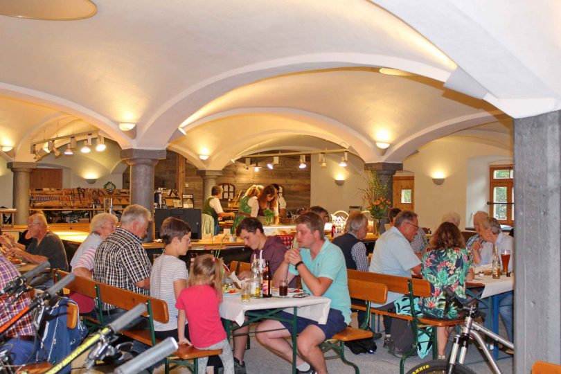 Der Ideenreichtum auf dem Samerberg, wenn es um die Pflege von Landschaft und Gemütlichkeit gleichermaßen geht, kennt schier keine Grenzen. Als nämlich im Rahmen einer bäuerlichen Initiative im heurigen Frühjahr die Landwirtschafts-Wege „Almen“ und „Tal“ mit vielen Informationstafeln erstellt und vor wenigen Wochen aufgestellt worden waren, da setzten sich die ehrenamtlich arbeitenden Bauern nach getaner Arbeit immer wieder zur gemeinsamen Brotzeit zusammen. Dabei gab es stets Erzeugnisse von den Samerberger Bauernhöfen und dabei kam auch die Idee zustande, dieses gemütliche Zusammensitzen zum Feierabend auch den Samerberger Vermietern und Gästen anzubieten. Der Idee und Anregung folgend fand sich beim Käser-Bauern der Familie Wiesholzer in Grainbach auch gleich eine interessante Lokalität. Im ehemaligen Stall, der inzwischen vom Bikepark Samerberg als Ausstellungsraum genutzt wird, wurden mit verschiedenen landwirtschaftlichen Elementen (z. B. mit Heu-Hiefeln) und mit passenden Sitzgelegenheiten die besten Voraussetzungen geschaffen, um sich die Produkte von der nahen Käserei des Lochnerhofes, Wurst-Variationen vom Maschdei-Hof sowie weitere Genüsse aus Samerberger Höfen und Gärten schmecken zu lassen. In ihrer Begrüßung freute sich Tourismusvereins-Vorsitzende Roswitha Estermann, dass schon beim ersten Termin vielfältiger Zusammenhalt beim Herrichten zu spüren war und dass der Besuch aus den Reihen von Urlaub auf dem Bauernhof, Privatvermietern und Wirte-Gästen recht zahlreich war. Ein Informationsfilm über den Bikepark und vor allem viel Gelegenheiten, mit Bekannten zu ratschen und neue Kontakte beim gemütlichen Zusammensein zu knüpfen sorgten dafür, dass der erste Samerberger Brotzeitabend zu einem richtigen Genuss-Erfolg wurde. Einhellig waren sich Gastgeber, Organisatoren und Gäste einig, dass diese Form von Zusammenkünften auch fortan wieder einmal angeboten werden wird. Nähere Informationen zu den Samerberger Veranstaltungen und zu den Landwirtschaftswegen „Almen“ und „Tal“ gibt es bei der Gäste-Information Samerberg, Telefon 08032-989814.