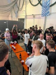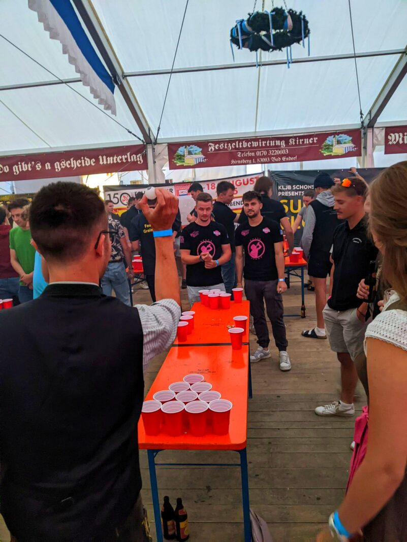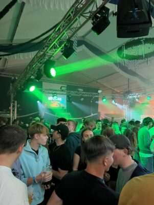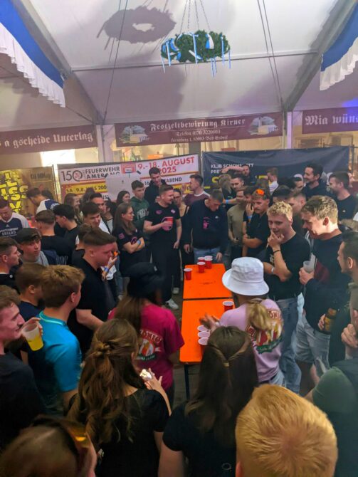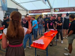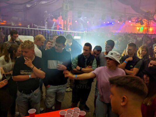 Ein besonderes Highlight des Abends war das Bier-Pong-Turnier, bei dem 32 Teams in spannenden Spielen im KO-System um ein 20-Liter-Bierfass kämpften. Die Begeisterung der Teilnehmer und Zuschauer war dabei deutlich spürbar. Die Stimmung erreichte ihren Höhepunkt mit dem Auftritt des DJ-Duos Habe & Dere, das von DJ Jorden Beware unterstützt wurde. Die musikalische Unterhaltung traf genau den Geschmack des Publikums und sorgte für ausgelassene Feierlaune. Besonders beliebt waren auch die Getränkespecials, die durch ein Blaulicht angekündigt wurden. Die Veranstaltung verlief reibungslos und ohne nennenswerte Zwischenfälle, was zu dem positiven Gesamteindruck beitrug.