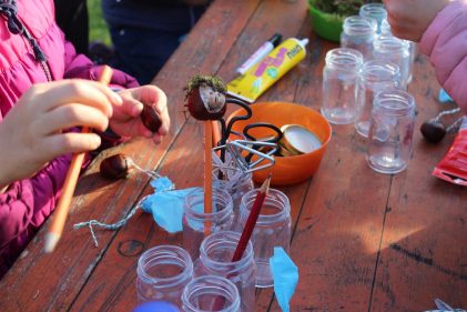 BHM_Kastanienschleudern: Die Kastanienschleudern wurden im Bauernhausmuseum Amerang gleich ausprobiert. © Bezirk Oberbayern, Bauernhausmuseum Amerang