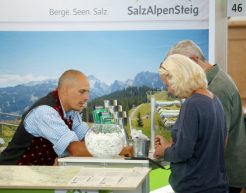 Rund 275 Aussteller präsentierten auf der Outdoormesse Tour Natur vom 1. bis 3. September 2017 in der Düsseldorfer Messehalle 6 die neueste Ausrüstung für Wandern, Klettern, Trekking-und Mountainbiken. Wander- und Trekkingfans konnten sich über das Spektrum von über 5.000 Reisedestinationen aus dem In- und Ausland informieren. Der Stand des SalzAlpenSteigs war während der Messetage sehr gut besucht . Viele Interessierte infomierten sich aus erster Hand über die zahlreichen Wandermöglichkeiten zwischen Chiemsee, Königssee und Hallstätter See. Ein Höhepunkt für den SalzAlpenSteig war die offizielle Urkundenübergabe für Platz 3 bei der Wahl zu Deutschlands schönstem Wanderweg.