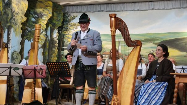 Nachdem der Heimatabend der ‘Holzlandler’ coronabedingt in den vergangenen beiden Jahren nicht stattfinden konnte, freuten sich die Gäste heuer umso mehr wieder auf eine bunte Mischung aus Musik, Gesang, Tanz und Plattler. Das ansprechende Programm im herbstlich dekorierten Münchsaal reichte vom festlichen Auftanz, schneidigem Plattln und Drahn der Aktiven bis hin zu Volkstänzen der Kinder- und Jugendgruppe. Gesang und Musi waren mit dem Edinger Viergesang und den Holzlandler Nachwuchsmusikanten ebenfalls gut vertreten und die Oakarrer Musi begleitete auf ihren Instrumenten gekonnt die verschiedenen Tanz- und Plattlerdarbietungen. Als Sprecher fungierte Altbürgermeister Sepp Eder, der mit Sachverstand und feinem Humor durch das Programm führte und für die Technik zeichnete Martin Steinhöfer verantwortlich, der mit seiner Anlage erneut eine hervorragende Akustik im Saal geschaffen hatte. Den lautstarken Abschluss des Heimatabends bildeten die Goaßlschnalzer vom Trachtenverein Reischach, die ihre Fuhrmannspeitschen gekonnt zur flotten Ziach-Musik von Gerhard Hellbauer schwangen und Vorstand Georg Englsperger dankte zuletzt noch allen Mitwirkenden, Betreuern und vor allem den Eltern der Trachtenjugend für ihren besonderen Einsatz um Brauchtum und Kultur.