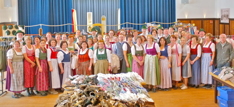 Mehr als 50 Helferinnen und Helfer waren bereits ab 7 Uhr früh im Festsaal, um die von fast 170 Verkäufern angebotenen Joppen, Hüte, Strickjacken, Schuhe, Dirndlgewänder, Schürzen, Blusen, Mäntel, Trachtenanzüge, Lederhosen oder auch den dazu passenden Schmuck und vieles mehr, entgegenzunehmen und im Festsaal zu präsentieren. Kurz nach Mittag folgte dann der große Ansturm der Interessenten, die die angeboten Waren kritisch prüfen, probieren und dann auch vielfach nach Hause nehmen konnten. 1700 Artikel standen zur Auswahl, über die Hälfte davon fand neue zufriedene Besitzer, die sich zwischendurch auch an der gut bestückten Kaffe- und Kuchentheke der Trachtler stärken und verwöhnen lassen konnten. 10% des Verkaufserlöses kommen dabei der Jugendarbeit des Vereins zugute. Viel Lob von den Kunden und Gästen gab es für die Siegsdorfer Trachtler, die an diesem Tag mit der Vorbereitung, dem Kuchen backen, bei der Annahme an sechs Stationen, beim Auszeichnen und sortieren der Artikel, beim Verkauf und der Beratung, aber auch bei der abschließenden Rückabwicklung der nicht verkauften Artikel eine logistische Meisterleistung ablieferten. Herzlichen Dank an alle Helferinnen und Helfer. Franz Krammer