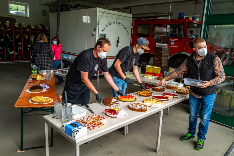Mit einem solchen Ansturm hatten die Aktiven und Verantwortlichen der Feuerwehr von Törwang auf dem Samerberg nicht gerechnet als Sie am Pfingstmontag einen Kuchen-, Torten- und Eis-Verkauf organisierten. Schneller als gedacht waren all die vielen von Vereinsmitgliedern gespendeten Süssigkeiten für die nachmittägliche Kaffeepause daheim abgeholt worden. Zuweilen ergaben sich sogar ein wenig Wartezeiten, was allerdings Niemand störte, denn die Freude über die Aktion “Siasse Pfingsten” überwog.