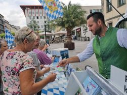 „Fulda war der bislang erfolgreichste Werbeeinsatz mit dem Urlaubs-Truck vom Chiemsee in diesem Jahr!“ – mit diesem Resümee kehrte Organisator Wolfgang Bude aus Aschau wieder in den Chiemgau zurück, begleitet wurde er von Florian Tatzel aus Prien und vom Trauntal-Duo, das für musikalische Urlaubsanreize sorgte. Wie die Chiemgauer Touristiker weiter vermeldeten, waren die zentrale Lage auf dem Universitätsplatz vor dem Karstadt – Haupteingang, die vielen Leute, die sich für Chiemsee-Alpenland interessierten, die weit zu hörende Musik und nicht zuletzt die angenehmen Temperaturen die Grundlage für den sehr regen Zuspruch am Stand. „Lange nicht mehr verbrauchten wir derart viel Werbematerial, aber auch kleine Gaben für die zahlreichen Kinder, die wohl aufgrund der Ferien mit den Ihren vorbei schauten. Als ideale kleine Aufmerksamkeiten erwiesen sich vor allem wieder die Schoko-Herzchen aus Übersee und die Marmeladegläschen aus dem Apfeldorf Bad Feilnbach. Auf jeden Fall war der Stand am Samstagnachmittag nahezu ausgeplündert“.