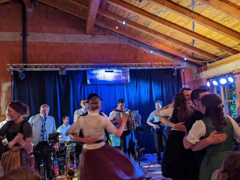 Die Chiemgauer Musikgruppe Alpenbeat sorgte wieder mit einem umfangreichen Repertoire aus traditionellen bayerischen und modernen Stücken für eine fröhliche Atmosphäre, die Tanzfreudige aus allen Altersgruppen auf die Bühne brachte. Die Weinkarte bot wie in den Vorjahren eine vielfältige Auswahl an Weinen vom Weingut Dexheimer in Spiesheim bei Rheinhessen.