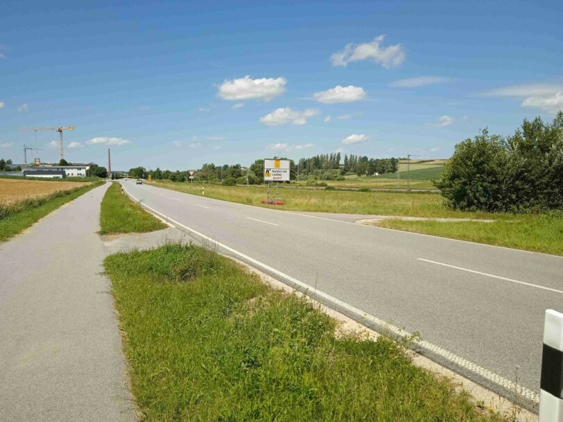 Bericht und Foto: LRA Landshut – Auf diesem Grundstück an der B15/St 2615 entsteht ab Mitte Juli die neue Altstoffsammelstelle für Ergoldsbach und Neufahrn.