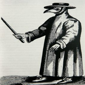 Die Pest des 14 Jahrhunderts hat nicht viel mit Covid 19 gemeinsam, aber gewisse Parallelen gibt es doch. Als 1347 in München zum ersten mal die Pest ausbrach, waren die Bürger der Stadt völlig ratlos. Wo kam sie her, die Seuche? Um den Unheil auszuweichen, traute man sich nicht mehr auf die Straße. Die Ärzte behandelten das Thema vorsichtig mit Schutzkleidung. Wo heute das Corona Personal mit einer FFP2- Maske auftritt, hatte ein Pestarzt eine Brille auf, deren Ränder eng an der Haut angelegt waren. Und statt einer FFP2-Maske hatte der Arzt damals einen schnabelförmigen Schutz über den Mund, so dass jeder „Todeshauch“ des Kranken abgewehrt wurde. Und über den Körper des Arztes war eine Leinen geworfen, das in völlig isolieren sollte.