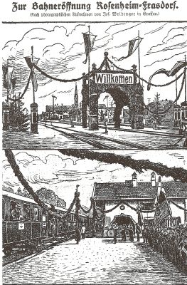 „Nach zwei Dezennien (=Jahrzehnten) langer Bemühungen und einer mehrjährigen Bauperiode ist die Bahn Rosenheim-Frasdorf , die das Gebiet des Samerberges, der Hochriß und der Aschauer Gegend dem Verkehr näher bringt, vollendet, so dass der Betrieb heute Samstag eröffnet werden konnte. Die Probefahrt der Bahnbehörden hat am Dienstag dieser Woche stattgefunden, am Mittwoch schloss sich die offizielle Festfahrt für die Behörden der Stadt und des Bezirks Rosenheim, für die Gemeindevertretungen, für die gewerblichen Korparationen, für das Eisenbahnkomité u.f.w. an.“ – so beginnt ein Artikel der Chiemau-Zeitung und der Geschichtsschreiberei des Königlichen Amtsgerichts Prien am 8. Mai 1914 zur Eröffnung der Bahnlinie Rosenheim-Frasdorf. Vor 50 Jahren wurde diese Verkehrs-Angebot wieder aus dem Verkehr genommen: ein Rückblick.