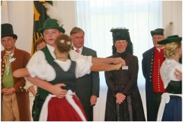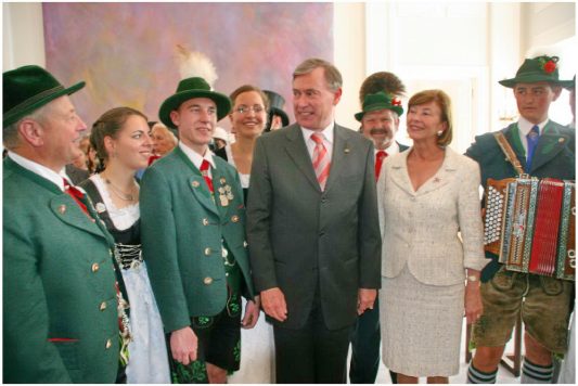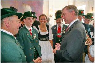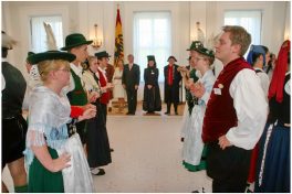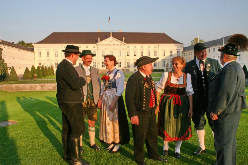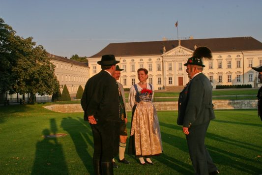 Berlin/Bayern (hö) – „Trachten stehen für Tradition und Fröhlichkeit, zudem sind sie Ausdruck für Vielfalt und Kraft in Deutschland“ – mit diesen Worten würdigte Bundespräsident Horst Köhler die ganzjährige ehrenamtliche Tätigkeit aller in den Brauchtumsvereinen in Deutschland aktiven Frauen, Männer, Jugendlicher und Kinder. Von den insgesamt 250.000 Dirndl und Buam bis 27 Jahre und den rund zwei Millionen Mitgliedern in tausenden von Vereinen innerhalb des Deutschen Trachtenverbandes waren 150 in den Großen Festsaal des Schlosses Bellevue in Berlin zu einem über einstündigen Empfang  eingeladen.
