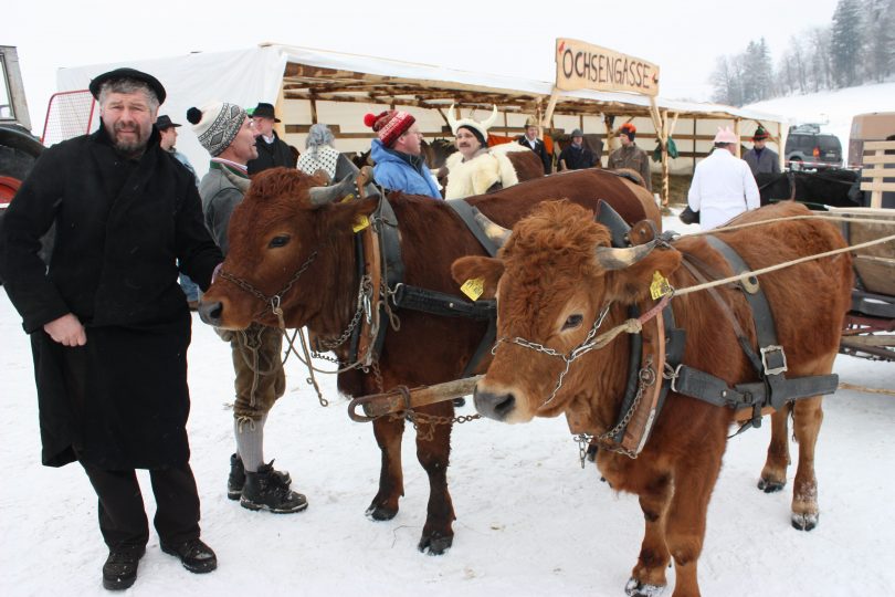 Zehn Ochsen (und ihre Besitzer) nahmen teil. Mit phantasievollen Kostümen – Hörner waren für Ochs und Fahrer als Dienstbekleidung fast Vorschrift – glänzten die Fahrer. Auch bei den Zuschauern war zumeist eine dem Anlass angemessen Maskierung als Ochs und Kuh angesagt, Hauptsache alle waren warm angezogen, denn nicht einmal der reichliche Glühwein konnte die vielen verfrorenen Nasen auftauen.