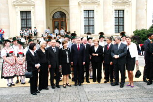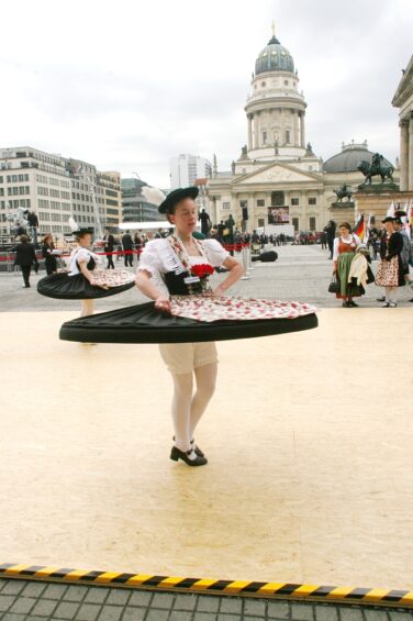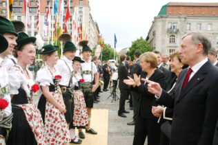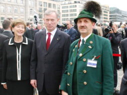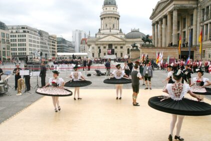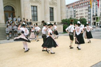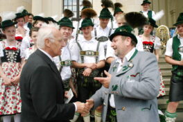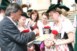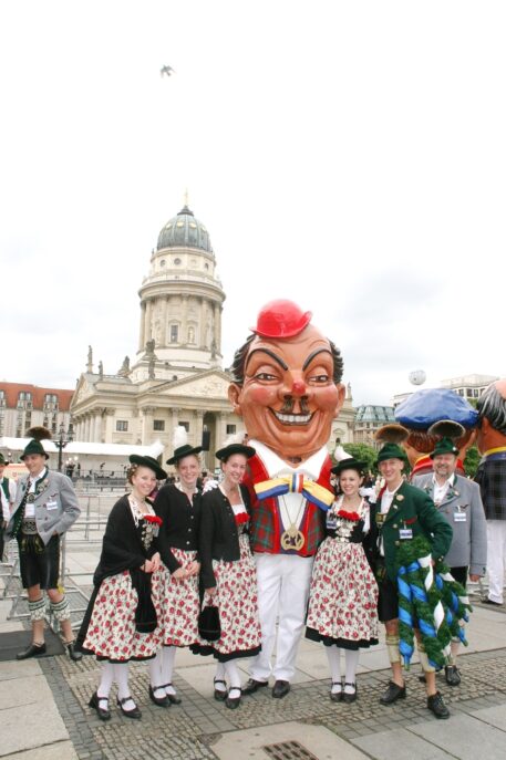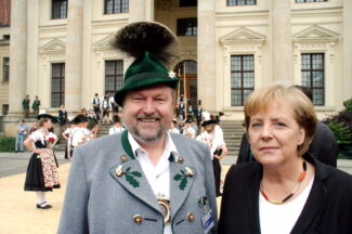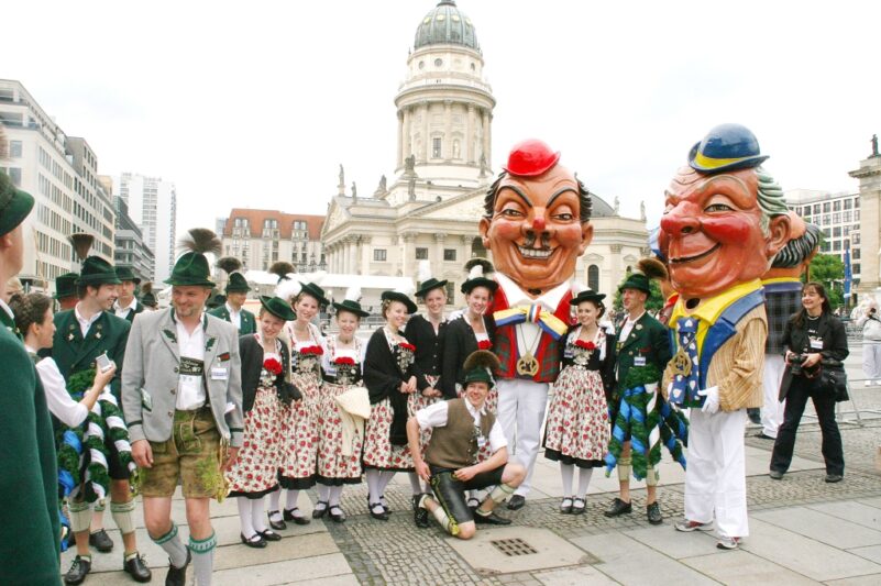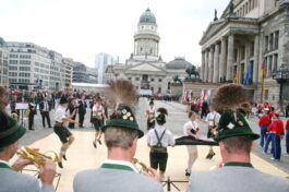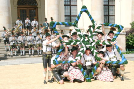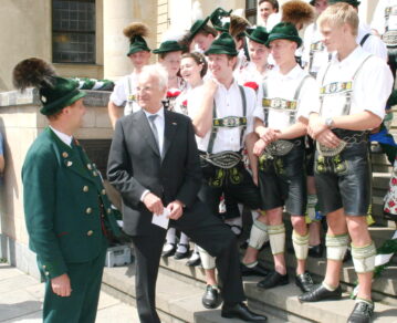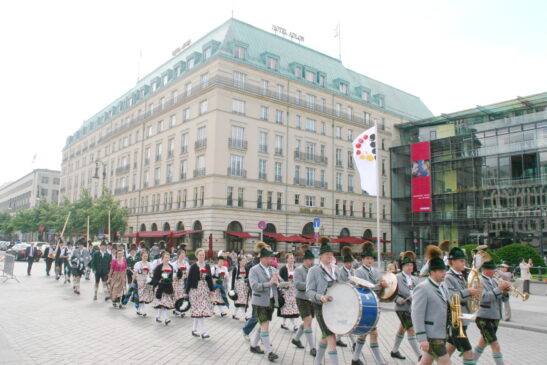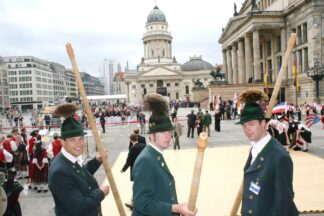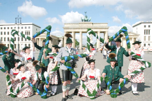 Bayerische Brauchtumsbeiträge für 60 Jahre BRD in Berlin – Berlin-Chiemgau (hö) – Hautnah konnte eine 50köpfige Brauchtums-Delegation aus Weißbach an der Alpenstraße, Unterwössen und Schleching im Chiemgau sowie aus Übersee am Chiemsee bei den Feierlichkeiten „60 Jahre Bundesrepublik Deutschland“ in Berlin dabei sein.