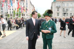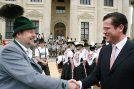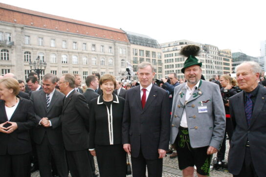 Höhepunkt war die Teilnahme am Rahmenprogramm beim Staatsakt am Gendarmenmarkt. Dabei begegneten die Musikanten, Trachtlerinnen und Trachtler, Alphornbläser und Goaßlschnalzer den höchsten deutschen und bayerischen Politikerpersönlichkeiten. In vielen persönlichen Gesprächen drückten Bundespräsident Horst Köhler, Bundeskanzlerin Angela Merkel, die bayerischen Bundes-Minister Ilse Aigner und Karl-Theodor zu Guttenberg sowie Bayerns Ministerpräsident Horst Seehofer und sein Vor-Vorgänger im Amt Dr. Edmund Stoiber ihre große Wertschätzung für traditionelle und ehrenamtliche Brauchtumspflege aus. Die Chiemgauer waren auch aktiv beteiligt beim Bürgerfest am Brandenburger Tor. Des weiteren erhielten Sie einen Weißwurst-Empfang in der Bayerischen Landesvertretung durch Europaministerin Emilia Müller und bei der Heimfahrt gaben sie noch in der touristischen Partnerregion im Spreewald ein Gastkonzert. Unsere Aufnahmen zeigen einige Eindrücke von der Reise der Chiemgauer nach Berlin. Die Organisation der Auftrittsreise mit vielerlei Werbemöglichkeiten für das Rosenheimer Land, den Chiemgau und für Urlaub auf dem Bauernhof hatte die Gäste-Information Samerberg.
