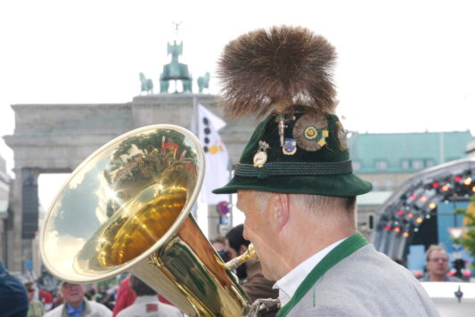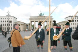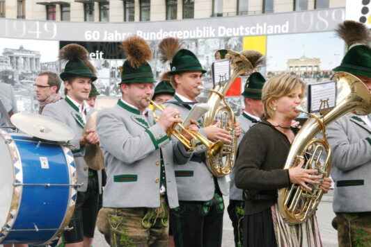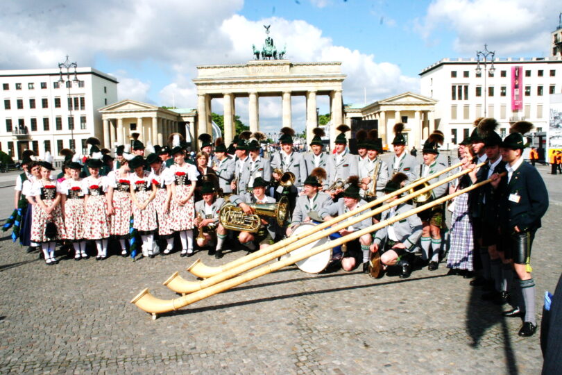 Wenn in diesen Tagen das Jubiläum “75 Jahre Grundgesetz” in ganz Deutschland gefeiert wird, dann erinnern sich gerne Blasmusikanten, Trachtler, Alphornspieler und Goaßlschnalzer aus dem Chiemgau und aus dem Berchtesgadener Land daran, dass sie zum 60jährigen Jubiläum des Grundgesetzes zu einer Auftrittsreise nach Berlin eingladen waren – davon der nachfolgende, damalige Bericht und dieser Bilderbogen.