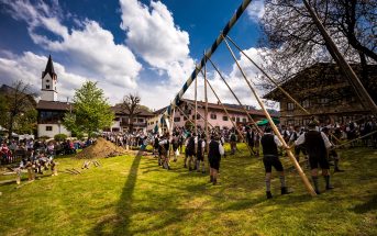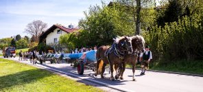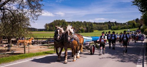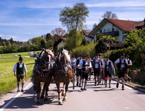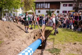 Gemeinsam wurde der 31 m lange Maibaum hergerichtet und die Tafeln montiert. Die Arbeiten wurden mit einem Grillfest beim Schober in Sattelberg, wo der Baum auch gelagert war, abgeschlossen. Am Montag, 1. Mai wurde schließlich der prächtige Baum, gezogen von zwei Rössern und begleitet von den Baschtlern und der Musikkapelle Neubeuern, über die Dorfstraße nach Altenbeuern zum Dorfplatz zurückgebracht.