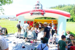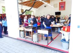Während sich vor allem Kinder und Jugendliche an den vielen Möglichkeiten des aktiven Unterwegsseins erfreuten und auf diese Weise einen spielerischen Einblick in das Aufgabengebiet der Feuerwehr und der Jugendfeuerwehr bekamen, gab es für die Erwachsenen, Eltern und Großeltern vor allem Gemütlichkeit und Genuss. Dafür sorgten die vielen Biertische und Sonnenschirme sowie der Service der Feuerwehrfrauen, die nach der eigentlichen Frühschoppenzeit auch noch Kaffee und Kuchen anboten während sich die Feuerwehrmänner noch um eine kleine und eigene Weißbier-Bar kümmerten. Wie erstmals im Vorjahr trat mit der Musik „D´GrossStoana“ eine junge Oberkrainerbesetzung aus dem bayerischen Voralpenland auf. Der Frühschoppen war erst am späten nachmittag zu Ende als wieder der Erlebnis-Parcour abgebaut und die Feuerwehr-Autos in ihrer Garage den angestammten Platz fanden.