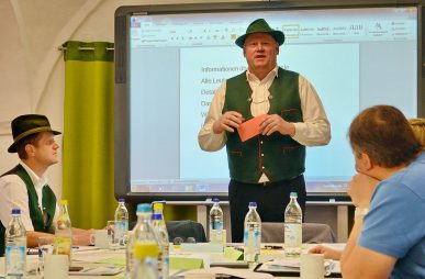 Mit einer Themensammlung für die Festtage, mit Vorschlägen für Musiken, für kulturelle Einlagen, für begleitende Nebenschauplätze wie Trachtenmarkt, Theater, Musik, Gewandschau … ging der zweite Seminartag viel zu schnell zu Ende. Zusammenfassend noch Ratschläge der Referenten: „Bestellt einen Festleiter, der den roten Faden in der Hand hält und als Entscheidungsträger fungiert, wenn die Meinungen im Festausschuss (maximal zehn bis 12 Personen) auseinanderdriften.“ Und schmunzelt der Hauser Michi, dessen Festzelt im vergangenen Jahr 8.000 Personen fasste: „Wer groß denkt, erreicht Großes. Lasst Euer Fest groß werden!“